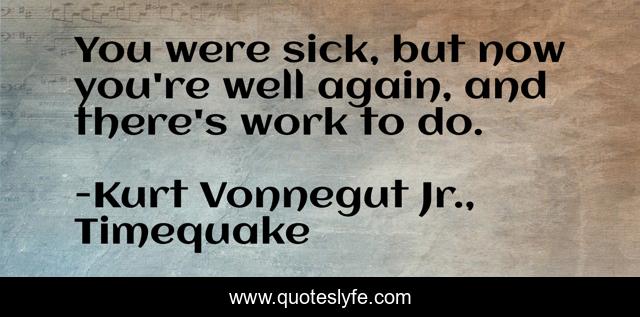 This page presents the quote "You were sick, but now you're well again, and there's work to do.". Author of this quote is Kurt Vonnegut Jr., Timequake. .