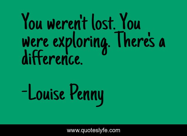 This page presents the quote "You weren't lost. You were exploring. There's a difference.". Author of this quote is Louise Penny. This quote is about exoloring, lost,.