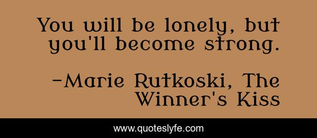 This page presents the quote "You will be lonely, but you'll become strong.". Author of this quote is Marie Rutkoski, The Winner's Kiss. This quote is about loneliness, strength,.