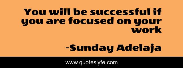 This page presents the quote "You will be successful if you are focused on your work". Author of this quote is Sunday Adelaja. This quote is about success, diligence, work, calling, fulfillment, purpose,.