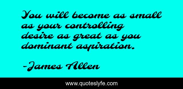 This page presents the quote "You will become as small as your controlling desire as great as you dominant aspiration.". Author of this quote is James Allen. This quote is about small, desire,.