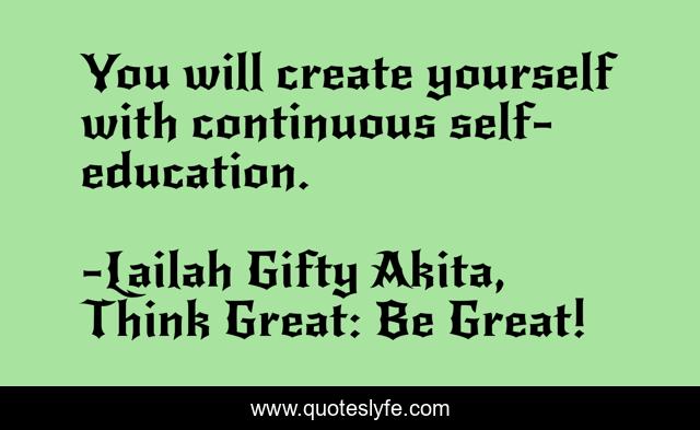 "Lailah Gifty Akita, Think Great: Be Great! Quotes." Quoteslyfe.com, 2025. Sat. 06 Dec. 2025. <https://www.quoteslyfe.com/quote/You-will-create-yourself-with-continuous-self-106294>.