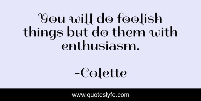 This page presents the quote "You will do foolish things but do them with enthusiasm.". Author of this quote is Colette. .