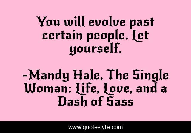 "Mandy Hale, The Single Woman: Life, Love, and a Dash of Sass Quotes." Quoteslyfe.com, 2025. Mon. 08 Dec. 2025. <https://www.quoteslyfe.com/quote/You-will-evolve-past-certain-people-Let-126544>.