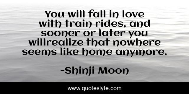 This page presents the quote "You will fall in love with train rides, and sooner or later you willrealize that nowhere seems like home anymore.". Author of this quote is Shinji Moon. .