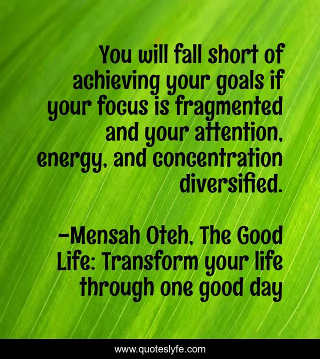 "Mensah Oteh, The Good Life: Transform your life through one good day Quotes." Quoteslyfe.com, 2025. Sat. 06 Dec. 2025. <https://www.quoteslyfe.com/quote/You-will-fall-short-of-achieving-your-48916>.