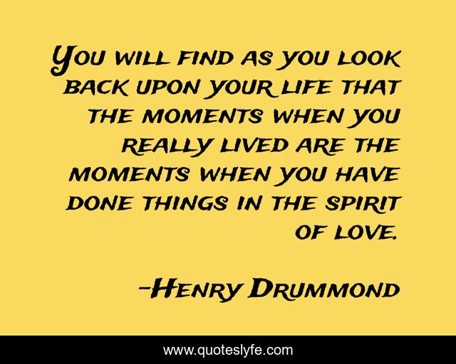 This page presents the quote "You will find as you look back upon your life that the moments when you really lived are the moments when you have done things in the spirit of love.". Author of this quote is Henry Drummond. .