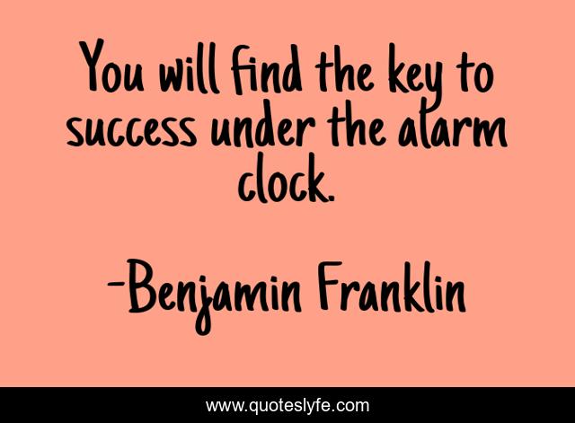 This page presents the quote "You will find the key to success under the alarm clock.". Author of this quote is Benjamin Franklin. .