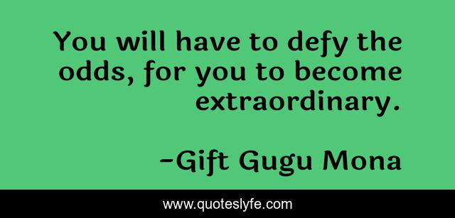 This page presents the quote "You will have to defy the odds, for you to become extraordinary.". Author of this quote is Gift Gugu Mona. This quote is about extraordinary, defy-the-odds, shining-bright, purposeful-living, purpose,.