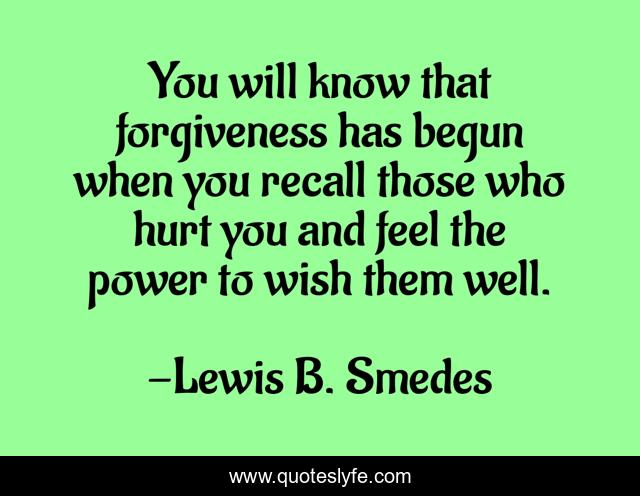 This page presents the quote "You will know that forgiveness has begun when you recall those who hurt you and feel the power to wish them well.". Author of this quote is Lewis B. Smedes. .