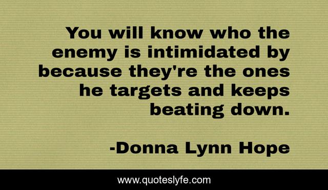 This page presents the quote "You will know who the enemy is intimidated by because they're the ones he targets and keeps beating down.". Author of this quote is Donna Lynn Hope. This quote is about demon, lucifer, satan, demons,.