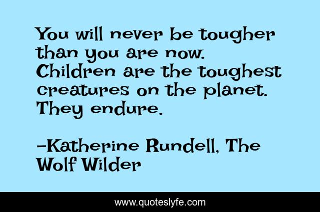 This page presents the quote "You will never be tougher than you are now. Children are the toughest creatures on the planet. They endure.". Author of this quote is Katherine Rundell, The Wolf Wilder. .