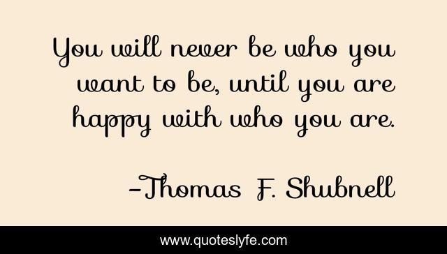 This page presents the quote "You will never be who you want to be, until you are happy with who you are.". Author of this quote is Thomas F. Shubnell. .