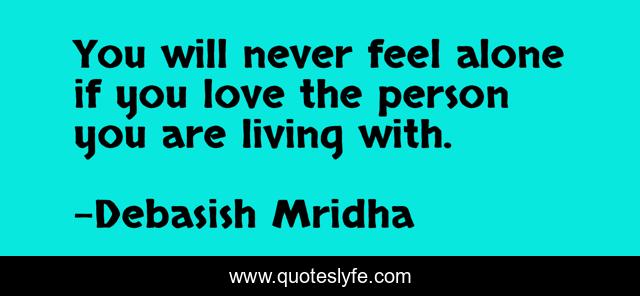 This page presents the quote "You will never feel alone if you love the person you are living with.". Author of this quote is Debasish Mridha. This quote is about life, love, knowledge, inspirational, intelligence, philosophy, wisdom, quotes, affection,.