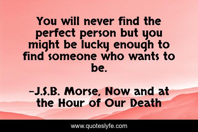 This page presents the quote "You will never find the perfect person but you might be lucky enough to find someone who wants to be.". Author of this quote is J.S.B. Morse, Now and at the Hour of Our Death. This quote is about relationships, heart, love, advice, heartbreak, perfection, affection,.
