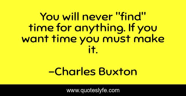 This page presents the quote "You will never "find" time for anything. If you want time you must make it.". Author of this quote is Charles Buxton. This quote is about day, one,.