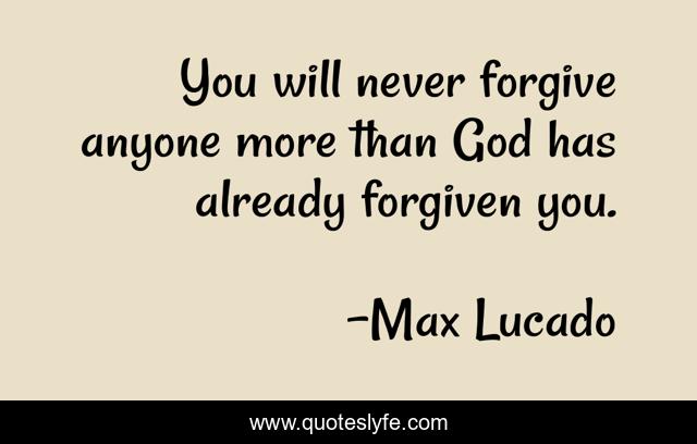 This page presents the quote "You will never forgive anyone more than God has already forgiven you.". Author of this quote is Max Lucado. This quote is about enthusiasm, forgiveness, inspirational, christianity,.