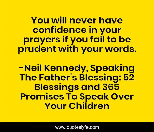 This page presents the quote "You will never have confidence in your prayers if you fail to be prudent with your words.". Author of this quote is Neil Kennedy, Speaking The Father's Blessing: 52 Blessings and 365 Promises To Speak Over Your Children. This quote is about confidence, prudent, words, words-of-wisdom, prayers,.