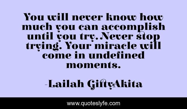 You will never know how much you can accomplish until you try. Never stop trying. Your miracle will come in undefined moments.