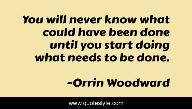 This page presents the quote "You will never know what could have been done until you start doing what needs to be done.". Author of this quote is Orrin Woodward. This quote is about action, results,.