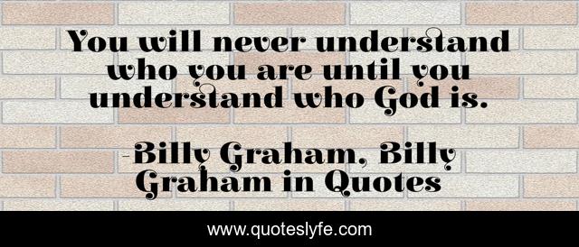 This page presents the quote "You will never understand who you are until you understand who God is.". Author of this quote is Billy Graham, Billy Graham in Quotes. This quote is about god, billy-graham,.