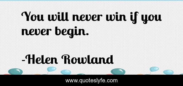 This page presents the quote "You will never win if you never begin.". Author of this quote is Helen Rowland. This quote is about enthusiasm, inspirational, winning,.