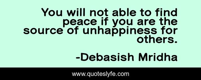 This page presents the quote "You will not able to find peace if you are the source of unhappiness for others.". Author of this quote is Debasish Mridha. This quote is about life, love, knowledge, inspirational, intelligence, philosophy, wisdom, quotes, affection,.