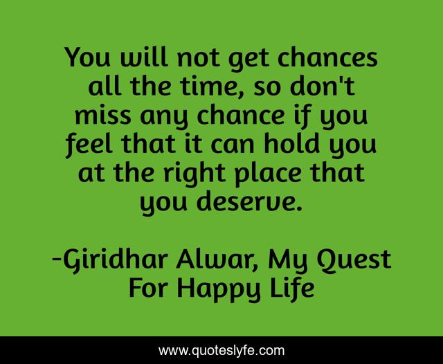 "Giridhar Alwar, My Quest For Happy Life Quotes." Quoteslyfe.com, 2025. Fri. 05 Dec. 2025. <https://www.quoteslyfe.com/quote/You-will-not-get-chances-all-the-58040>.