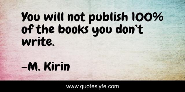 This page presents the quote "You will not publish 100% of the books you don’t write.". Author of this quote is M. Kirin. This quote is about writers-on-writing, writer-inspiration, writing-advice, inspiration, writing,.