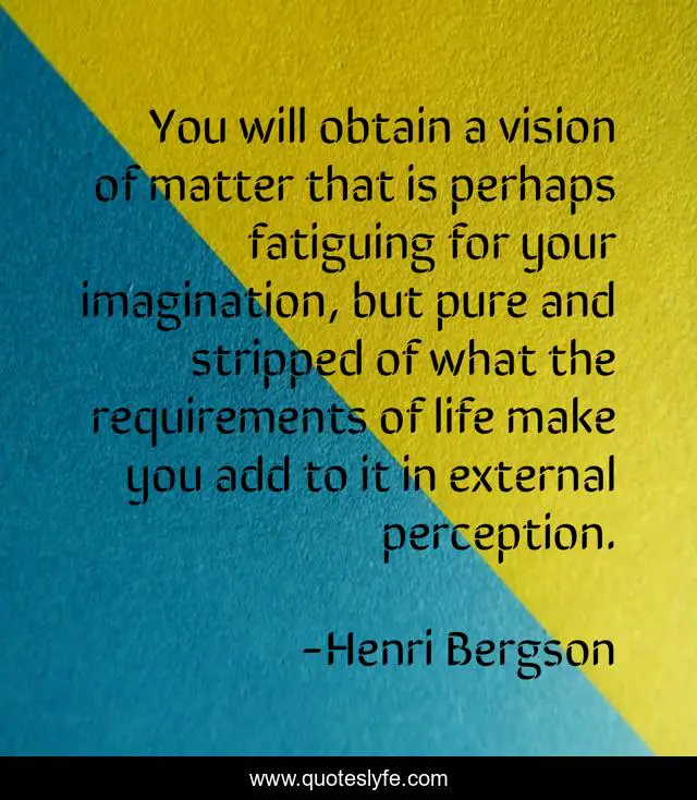 This page presents the quote "You will obtain a vision of matter that is perhaps fatiguing for your imagination, but pure and stripped of what the requirements of life make you add to it in external perception.". Author of this quote is Henri Bergson. This quote is about life, perception, vision,.