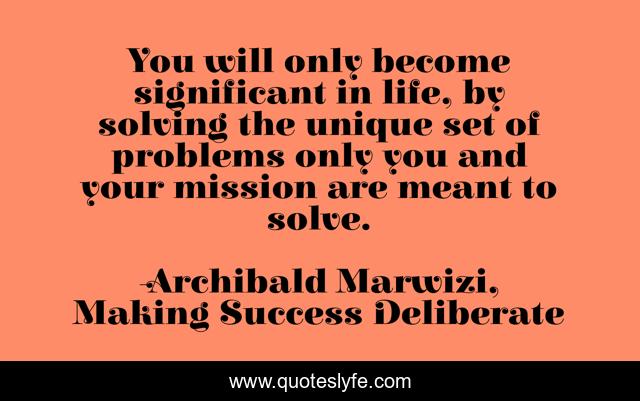 This page presents the quote "You will only become significant in life, by solving the unique set of problems only you and your mission are meant to solve.". Author of this quote is Archibald Marwizi, Making Success Deliberate. This quote is about life, success, behaviour, attitude, legacy, growth, purpose, inspirational, leadership,.