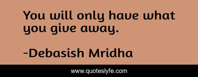 This page presents the quote "You will only have what you give away.". Author of this quote is Debasish Mridha. This quote is about give-away, generosity, philosophy, debasish-mridha, quotes, inspirational, enthusiasm, debasish-mridha-m-d,.
