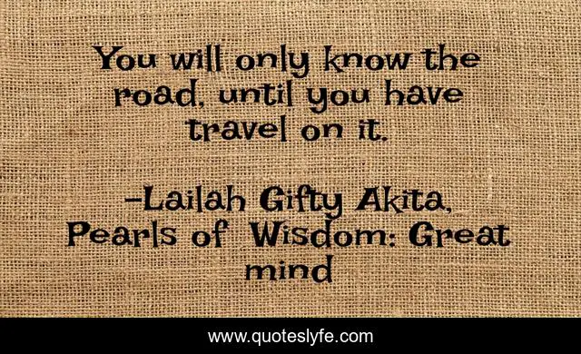 "Lailah Gifty Akita, Pearls of Wisdom: Great mind Quotes." Quoteslyfe.com, 2025. Fri. 05 Dec. 2025. <https://www.quoteslyfe.com/quote/You-will-only-know-the-road-until-140466>.