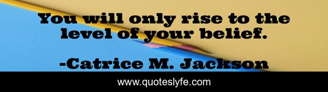 This page presents the quote "You will only rise to the level of your belief.". Author of this quote is Catrice M. Jackson. This quote is about catriceology, believe, change-your-thoughts, mindset, belief,.