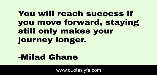 This page presents the quote "You will reach success if you move forward, staying still only makes your journey longer.". Author of this quote is Milad Ghane. This quote is about milad-ghane, business, success,.
