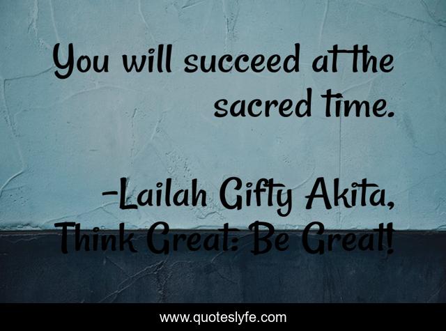 "Lailah Gifty Akita, Think Great: Be Great! Quotes." Quoteslyfe.com, 2025. Mon. 08 Dec. 2025. <https://www.quoteslyfe.com/quote/You-will-succeed-at-the-sacred-time-95042>.