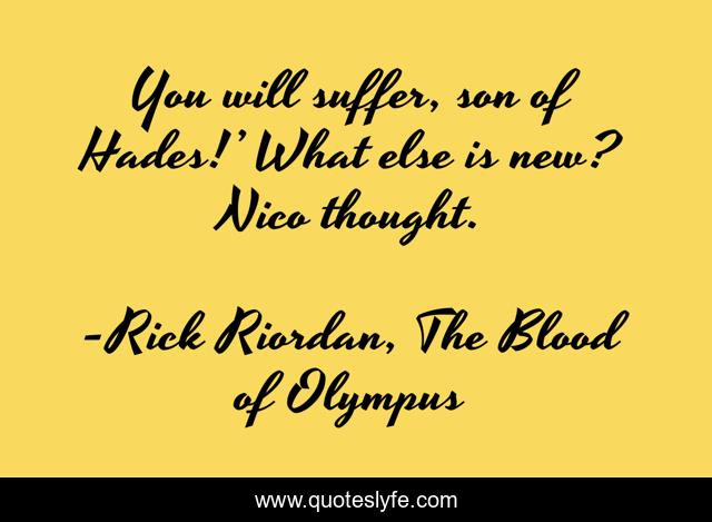 "Rick Riordan, The Blood of Olympus Quotes." Quoteslyfe.com, 2025. Tue. 09 Dec. 2025. <https://www.quoteslyfe.com/quote/You-will-suffer-son-of-Hades-What-2653>.