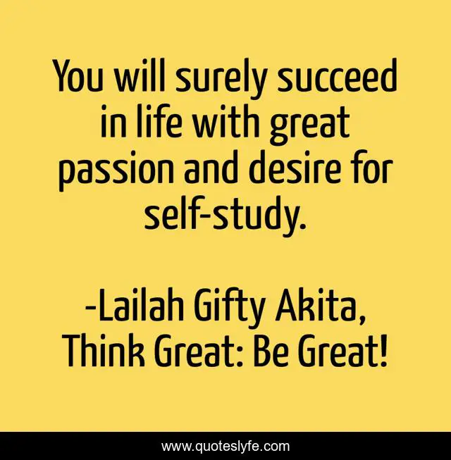 "Lailah Gifty Akita, Think Great: Be Great! Quotes." Quoteslyfe.com, 2025. Fri. 05 Dec. 2025. <https://www.quoteslyfe.com/quote/You-will-surely-succeed-in-life-with-92777>.
