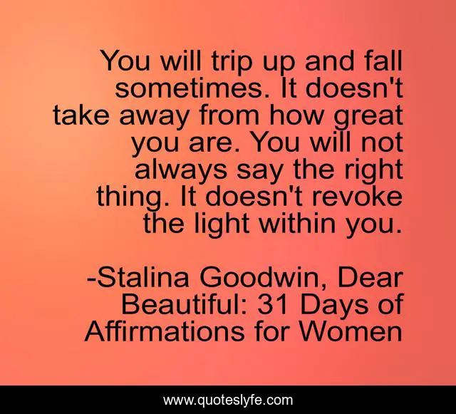 "Stalina Goodwin, Dear Beautiful: 31 Days of Affirmations for Women Quotes." Quoteslyfe.com, 2025. Fri. 05 Dec. 2025. <https://www.quoteslyfe.com/quote/You-will-trip-up-and-fall-sometimes-19915>.