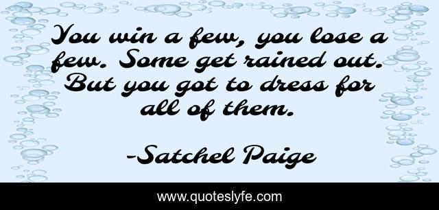 This page presents the quote "You win a few, you lose a few. Some get rained out. But you got to dress for all of them.". Author of this quote is Satchel Paige. .
