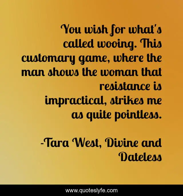 "Tara West, Divine and Dateless Quotes." Quoteslyfe.com, 2025. Fri. 05 Dec. 2025. <https://www.quoteslyfe.com/quote/You-wish-for-what-s-called-wooing-132230>.