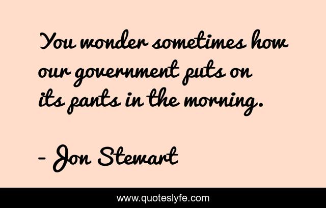 This page presents the quote "You wonder sometimes how our government puts on its pants in the morning.". Author of this quote is Jon Stewart. This quote is about funny, comedy, politics,.