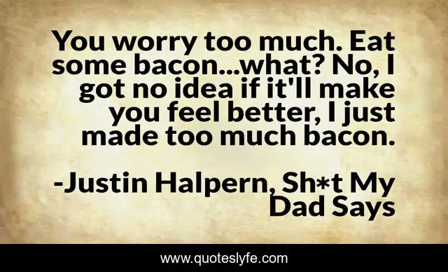 "Justin Halpern, Sh*t My Dad Says Quotes." Quoteslyfe.com, 2025. Sat. 06 Dec. 2025. <https://www.quoteslyfe.com/quote/You-worry-too-much-Eat-some-bacon-239423>.