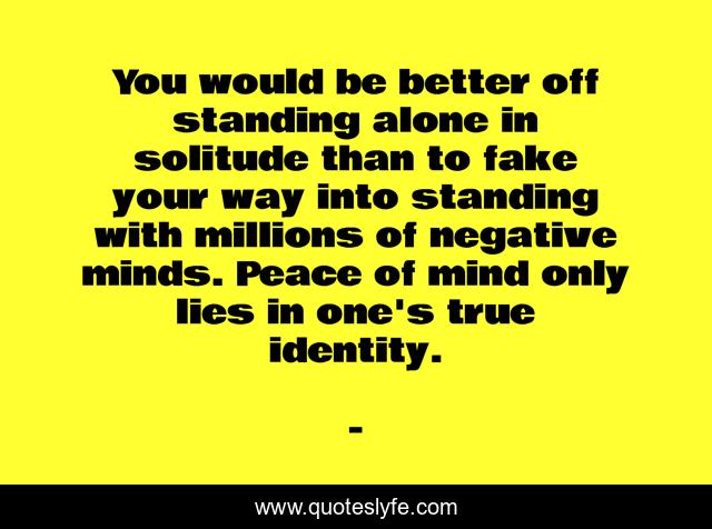 You would be better off standing alone in solitude than to fake your way into standing with millions of negative minds. Peace of mind only lies in one's true identity.