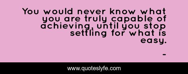 This page presents the quote "You would never know what you are truly capable of achieving, until you stop settling for what is easy.". Author of this quote is . This quote is about edmond-mbiaka, settling-for-what-is-easy, knowing-what-you-are-capable-of, what-you-are-truly-capable-of, stop-settling-for-less,.