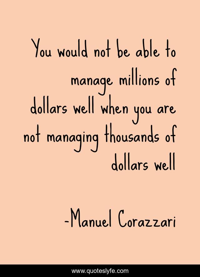 This page presents the quote "You would not be able to manage millions of dollars well when you are not managing thousands of dollars well". Author of this quote is Manuel Corazzari. This quote is about money, finance, stewardship,.