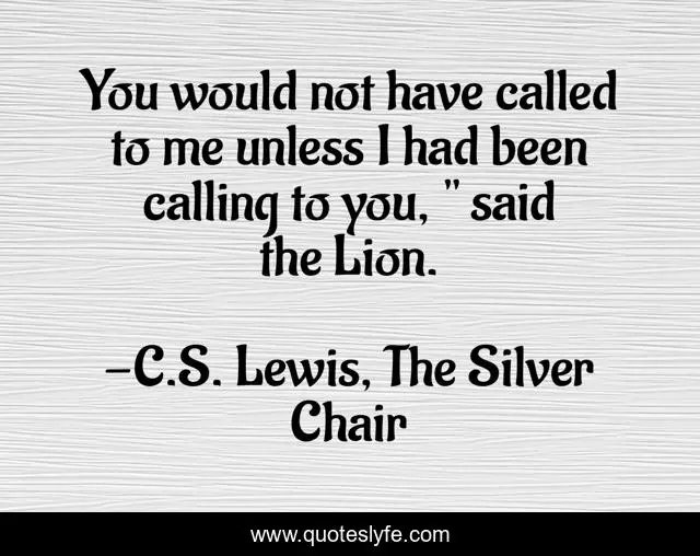 "C.S. Lewis, The Silver Chair Quotes." Quoteslyfe.com, 2025. Fri. 05 Dec. 2025. <https://www.quoteslyfe.com/quote/You-would-not-have-called-to-me-29600>.