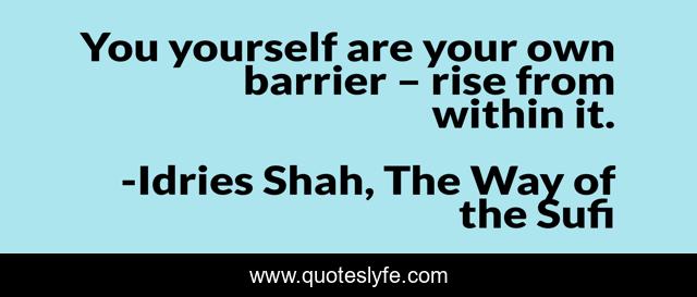 "Idries Shah, The Way of the Sufi Quotes." Quoteslyfe.com, 2025. Sun. 07 Dec. 2025. <https://www.quoteslyfe.com/quote/You-yourself-are-your-own-barrier-rise-178244>.