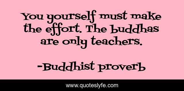 This page presents the quote "You yourself must make the effort. The buddhas are only teachers.". Author of this quote is Buddhist proverb. .