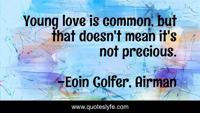 This page presents the quote "Young love is common, but that doesn't mean it's not precious.". Author of this quote is Eoin Colfer, Airman. This quote is about love, wisdom, young-love, common, precious, affection,.